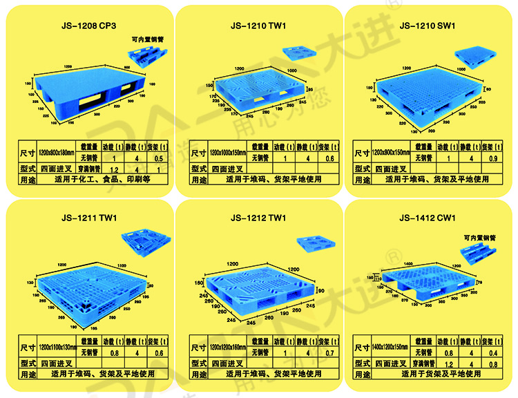 塑料托盘是使用PE/PP等热塑性塑料,加上一些改善性能的添加剂,通过注塑、吹塑等工艺加工而成的。目前已广泛应用与机械、电子、食品、医药、服装等行业。与木质托盘相比,塑料托盘整体性好,卫生洁净,易于冲洗消毒,在使用中具有质轻、无钉刺、耐酸碱、不霉变等特点,其使用寿命是木托盘的57倍。此外,环保塑料托盘符合环保要求,废盘材料可以回收利用。虽然塑料托盘价格相对偏高,但使用成本核算低于木托盘。